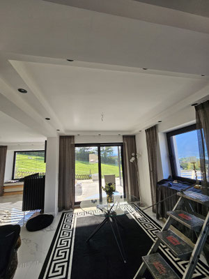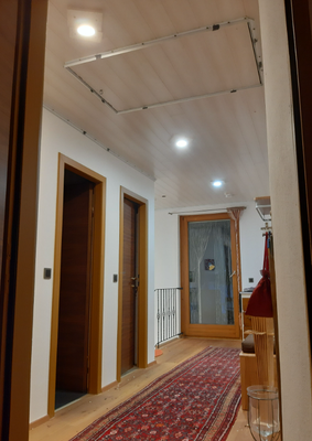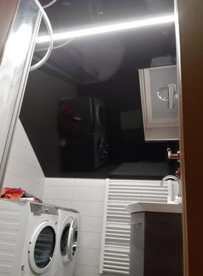 Hier zu sehen einige Vorher-Nachher Beispiele. Wie man mit Spanndecken (matt oder glänzend) einen Raum wirklich verschönern kann. Teilauschnitte wie Dachboden Aufgänge, Feuermelder, Radio etc. sind kein Problem und können angepasst werden.