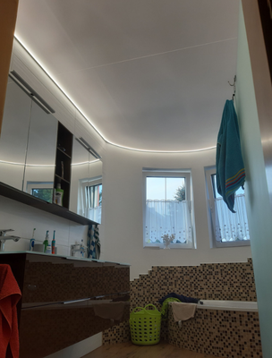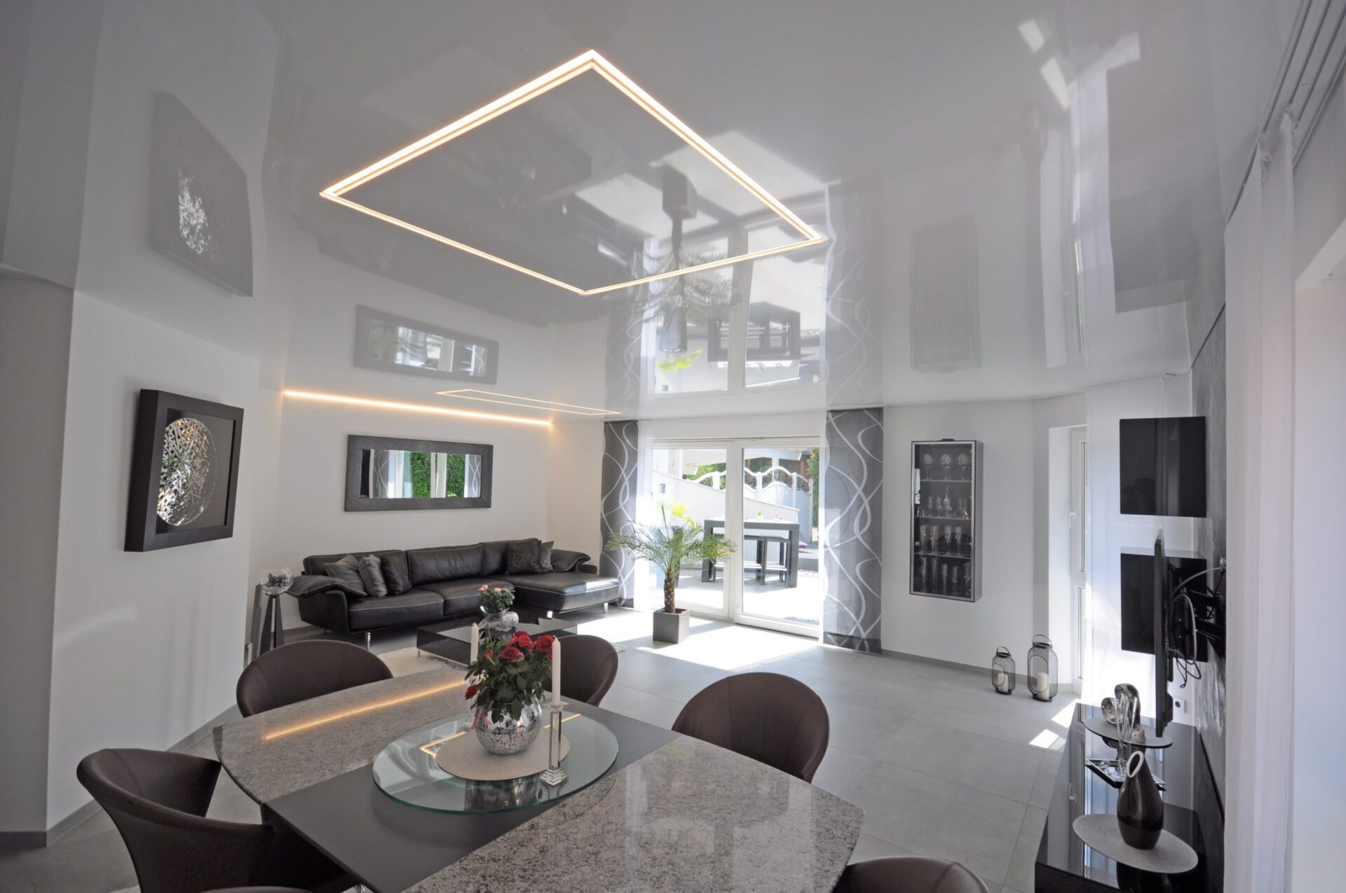 Hochwertige Folien, reißfest, wasserdicht, staubabweisend machen eine Renovierung oder einen Neubau Ihres Wohnraumes zur eleganten und langlebigen Investition. Durch das Unterdecke-System können mit einer effektvollen Beleuchtung besondere Akzente gesetzt werden.